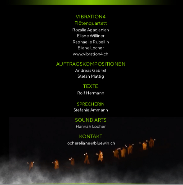 DER LETSCHT GRAATZUG nimmt das Publikum mit in die mystisch-irreale Atmosphäre der Sagen und Mythen und knüpft dabei an volksmusikalische Idiome an. Geheimnisvolle Klänge aus der mystischen Gletscher- und Bergwelt, Neue und traditionelle Musik sowie poetische Texte verschmelzen in diesem Projekt zu einem Gesamtkunstwerk, das trotz ökologischer Katastrophe und zunehmender Beklemmung viel Hoffnung versprüht. Diese duale Perspektive – die Zerstörung der Natur und die symbolische Befreiung der Seelen – zieht sich durch das gesamte Werk und bringt diese Ambivalenz auf künstlerische Weise zum Ausdruck.